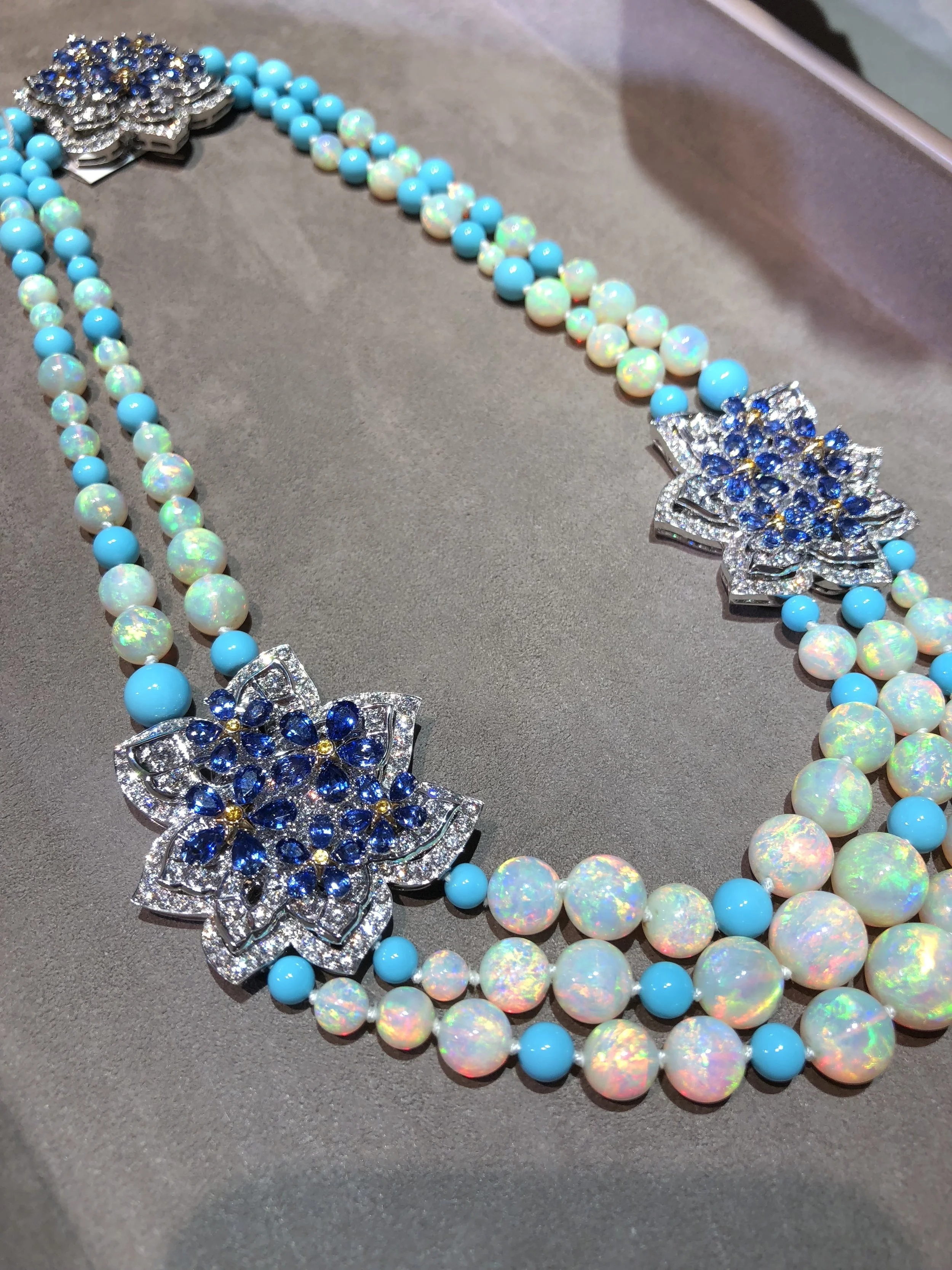 I had the best time sipping on tea and munching on little bites that were being served around the room and ofcourse trying on some of these amazing beauties! I was shown the complete new Frivole collection which had many beautiful and more affordable pieces, I absolutely fell in love with the pave earrings and ring. Then my lovely friend showed me some of the high jewelry pieces, which always get my heart racing. I especially loved the amazing one of a kind opal necklace (shown here) from the Le Secret collection that came out last year. All the pieces from that collection hold secret messages, some in writing some are hidden objects that can be revealed. This one had a secret written message on the backs of the diamond flower pieces, one of which also doubled as the clasp. How genius! I always leave Van Cleef & Arpels feeling so inspired and sometimes with a bag containing something sparkly!